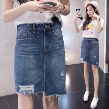 2017夏季韩版新款破洞不规则毛边高腰牛仔半身裙时尚百搭包臀裙女