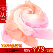 【180元3条】上海故事秋冬新款渐变真丝长丝巾 拼色桑蚕丝丝巾