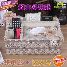 欧式多功能纸巾盒客厅茶几桌面手机遥控器收纳盒蕾丝创意餐巾抽纸