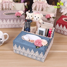 欧式多功能纸巾盒创意桌面遥控器收纳盒客厅蕾丝布艺餐巾纸抽纸盒