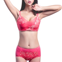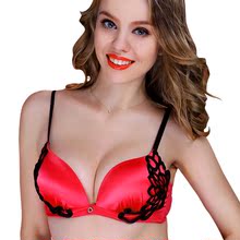 几何元素性感薄款本命年大红文胸套装聚拢光面蕾丝女士内衣新娘