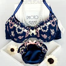 几何元素日系文胸套装性感聚拢刺绣大码女士夏季内衣胸罩包邮