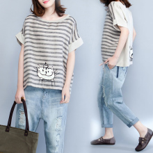 棉麻短袖女t恤上衣服宽松韩版2017新款肥胖mm加肥加大码200斤180