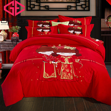 结婚纯棉卡通婚庆四件套 大红全棉磨毛新婚大红色加厚被套4床单