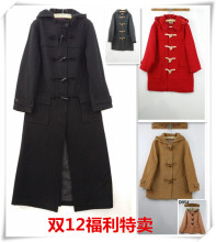 古着学院风日系中长款刺绣萌款牛角扣大衣毛呢女外套断码外单