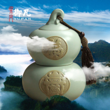 御凡汝窑葫芦茶叶罐陶瓷罐子大号密封罐创意存茶罐复古储物罐茶仓
