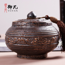 御凡铁锈釉创意茶叶罐陶瓷大号密封罐复古陶瓷罐子普洱茶缸存储罐