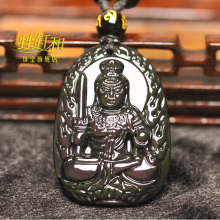 开光天然黑曜石守护神吊坠 不动明王菩萨 生肖属鸡本命佛男女包邮