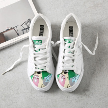 2017春季新款超纤皮面休闲系带平底可爱卡通学生女士单鞋潮小白鞋