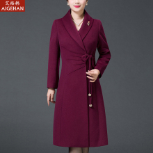 2016冬季新款女装中老年妈妈大码系带毛呢外套修身中长款羊绒大衣