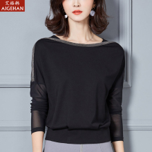 2017春夏打底衫长袖T恤女一字领上衣时尚大码短款雪纺衫春秋小衫