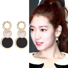 韩国气质长款耳坠几何贝壳撞色日韩版时尚 925银针耳环防过敏饰品