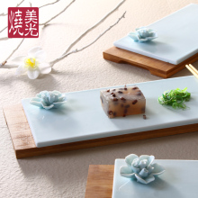 青墨水 龙泉青瓷长方平底餐盘 西式餐厅盘子冷菜盘甜点蛋糕瓷盘