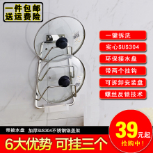 304锅盖架 不锈钢带接水盘厨房壁挂置物架 吸盘式免打孔锅盖架子