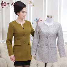 中老年女装春秋季羊呢子外套妈妈装上衣中年女装时尚圆领毛呢外套