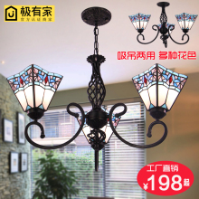 蒂凡尼地中海吊灯 欧式田园书房餐厅儿童房灯蓝色3三头卧室吸顶灯