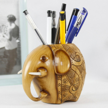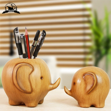 可爱仿木大象笔筒办公室桌面简约小摆件家居装饰创意时尚工艺品