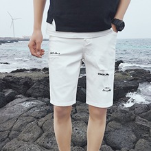 白色牛仔短裤男修身5分休闲破洞薄款中裤潮牌韩版夏季五分弹力潮