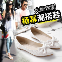 小白鞋女春秋平跟浅口尖头蝴蝶结女单鞋33 34时尚防滑平底鞋40-43