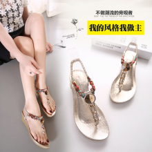 2017波西米亚水钻凉鞋女夏中跟休闲坡跟沙滩鞋41甜美流行学生鞋34