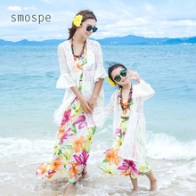 2017夏装新款女童连衣裙长裙儿童沙滩裙亲子裙波西米亚度假母女装
