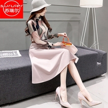 套装裙2017春秋装女装长袖新款雪纺两件套连衣裙中长款名媛裙子夏