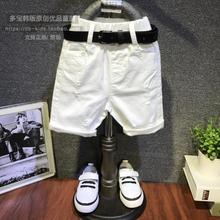 夏季夏装男童儿童白色破洞休闲裤纯棉弹性五分裤短裤中裤子配皮带