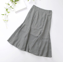 2017复古学院风格纹中裙A字裙高腰荷叶边鱼尾格子半身裙夏女