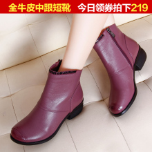 2016秋冬新款全真皮女靴子中跟女单靴休闲短靴粗跟及裸靴马丁靴潮