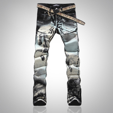 春秋新款大码彩绘男士牛仔裤印花韩版修身直筒花裤夜店舞台歌手