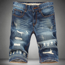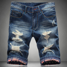 破洞牛仔短裤男 潮牌男装夏季新款修身直筒 乞丐洞洞补丁五分裤男
