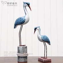 地中海木质海鸟书架置物架书房电视柜家居装饰品桌面小摆件礼物