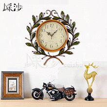 美式复古铁艺静音挂钟欧式客厅卧室家居装饰品创意田园橄榄枝时钟
