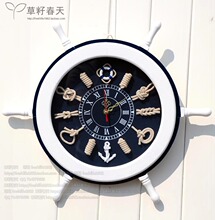 包邮实木船舵静音挂钟地中海家居装饰北欧风格客厅卧室背景墙挂件
