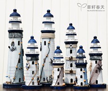 地中海木质灯塔摆件创意客厅玄关电视柜桌面摆设礼物家居装饰品