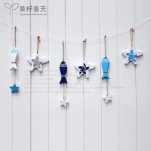 地中海风格实木装饰串壁挂墙饰创意家居饰品鱼串海星串海马串门帘