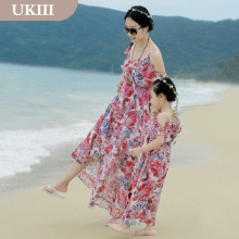 UKIII佑伽原创亲子装母女雪纺连衣裙夏季海边度假碎花沙滩裙短裙