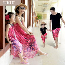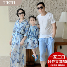 亲子装夏装2017新款一家三口母女连衣裙全家装套装女童亲子沙滩裙