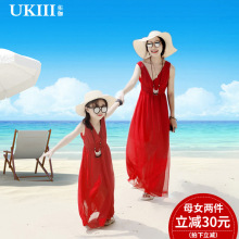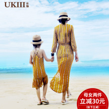 UKIII佑伽亲子装母女度假裙沙滩裙吊带雪纺连衣裙亲子碎花长裙