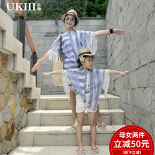 佑伽亲子装夏装母女装2017新款女童亲子连衣裙海边度假母女沙滩裙