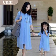 佑伽亲子装夏装2017新款潮母女装棉麻雪纺连衣裙文艺风度假裙