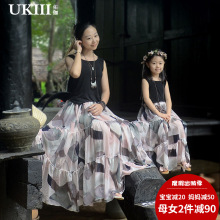 UKIII亲子装夏装2017新款母女装连衣裙亲子母女裙礼服裙韩版