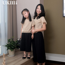 亲子装夏装2017新款母女装时尚套装女童亲子上衣针织衫阔腿七分裤