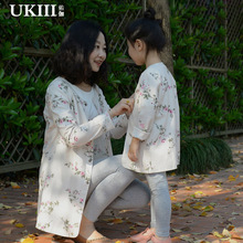 亲子装夏装2017新款母女装防嗮衣亚麻开衫上衣母女亲子外套外出服