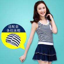 游泳衣女保守学生分体平角裙式小胸聚拢韩国可爱少女抹胸温泉泳装