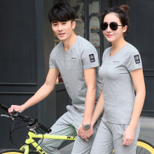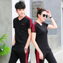 夏季休闲运动套装男女情侣款T恤短袖长裤运动服夏天运动服装衣服