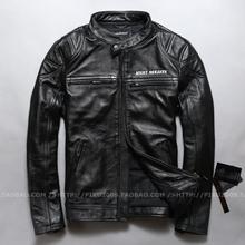 欧美男士 做旧短款男装多标头层牛皮男士机车真皮皮衣外套