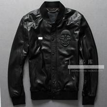 专柜街头机车服真皮皮衣 男 立领短款印第安骷髅做旧牛皮 男 皮衣