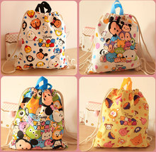 可爱超萌 hello kitty卡通女士女孩帆布 印花抽绳手拎包双肩包