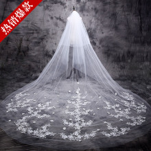 衣纱夫人2017新款韩式蕾丝花边婚纱礼服头纱大拖尾超长头纱包邮